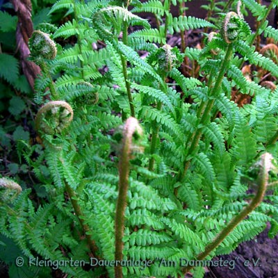 Adler- Trichter- oder Straußenfarn eignen sich besonders gut. Fehlt dem