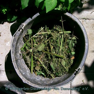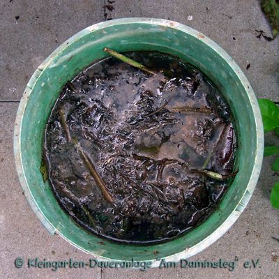 in 3 Liter Regenwasser mindestens 5 Tage lang stehen lassen (verjauchen)
