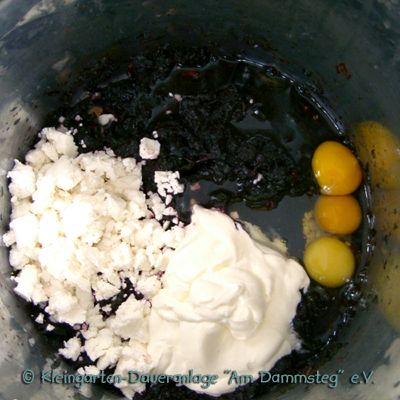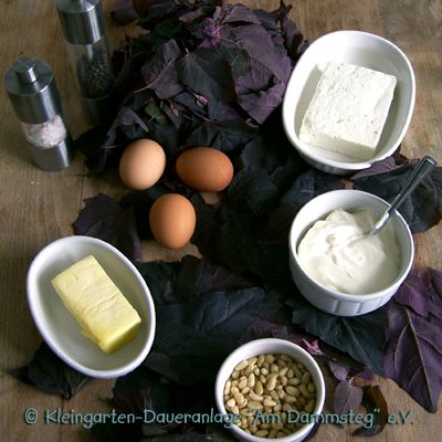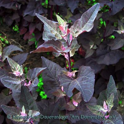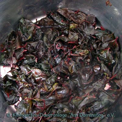 Aus dem Garten: ca. 750 g rote Melde (ersatzweise grüne Melde) 1 kleine Knolle frischer Knoblauch